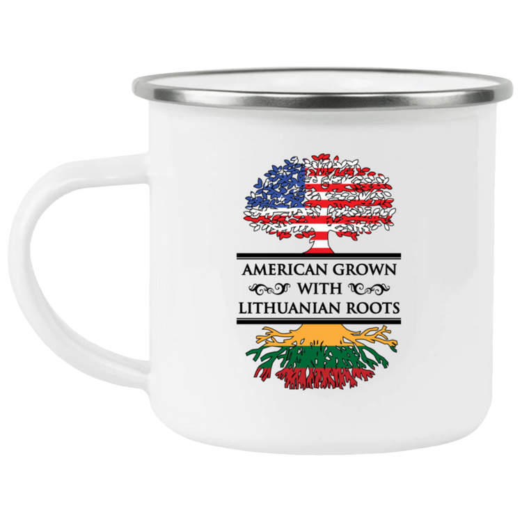 American Grown Lithuanian Roots - 12 oz. Enamel Camping Mug